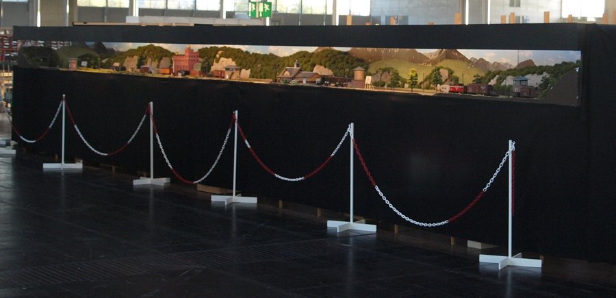 Noch eine Anlage nach amerikanischem Vorbild, noch ein Rundkurs, nochmals niederländischer Erbauer, aber alles drei Baugrößen kleiner. Die Anlage ist durch eine Mittelkulisse getrennt. Auf der einen Seite ist ein Landbahnhof, auf der anderen ein Bahnhof an einem See dargestellt. Die Landschaft war wirklich wunderschön gestaltet.