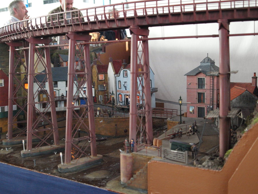 Diese Anlage war von Jahrzehnten schon im Miba Spezial zu sehen. Dargestellt ist ein kleiner Bahnhof an der Nordseeküste mit einigen Gleisanschlüssen und einem stählernen Viadukt, das über einen Fjord führt.