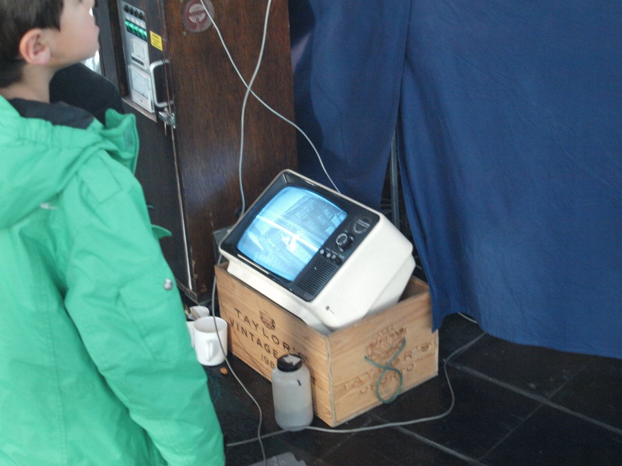 Der zur Überwachung des Schattenbahnhofs eingesetzte Fernseher stammt noch aus den Anfangsjahren der Bahn. ;-)