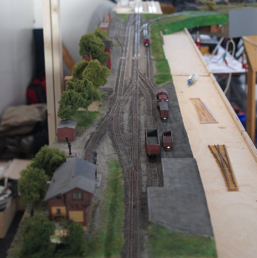 Bei diesem Aufbau war schön zu sehen, wie gut eine schmale Anlage wirkt, wenn sie nur etwas höher aufgebaut ist. Der Betrieb spielt sich knapp unter Augenhöhe ab und die begrenzte Fläche der Anlage fällt nicht so stark negativ ins Gewicht.