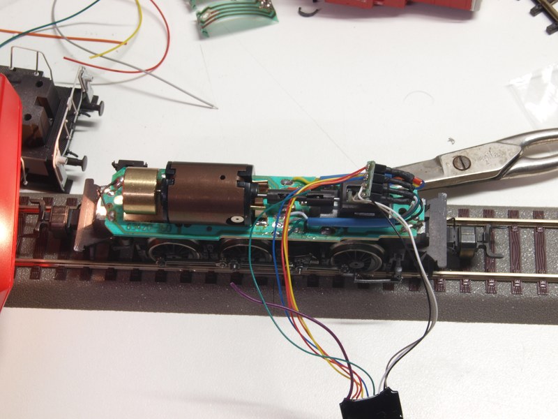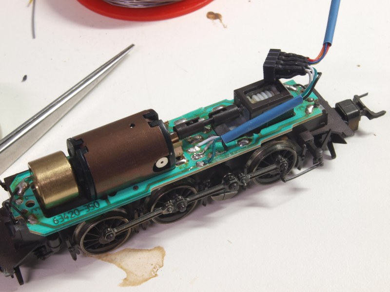 Der Decoder funktionierte auch nicht in einer anderen Lok, war also definitiv kaputt. Ein neuer Decoder brachte ebenfalls keine Besserung, also musste die Lok ins AW.