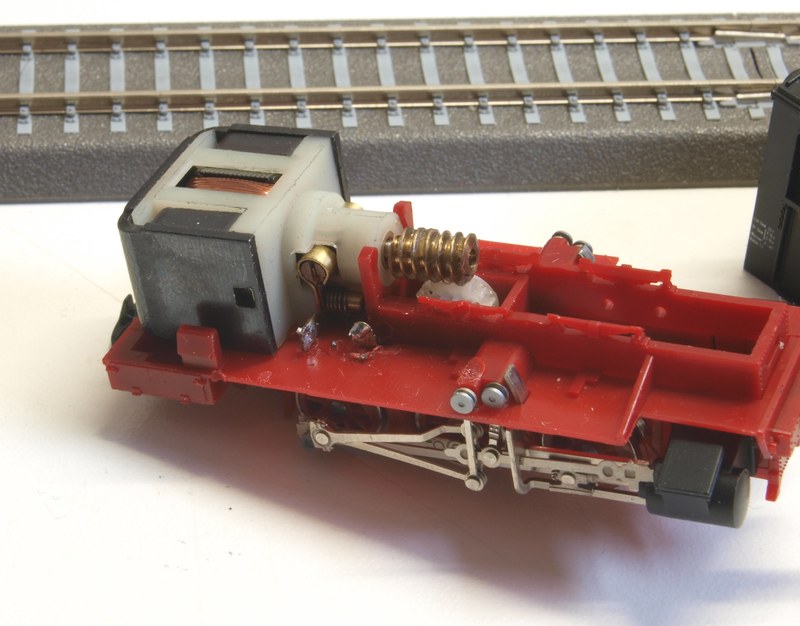 Alle störenden Bauteile sind entfernt, der Decoder kommt oben auf den Motor.