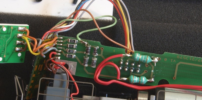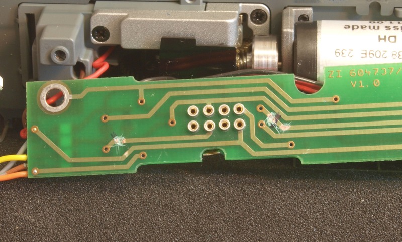 Der Umbau gestaltet sich wie erwartet recht einfach. Auf dem nächsten Bild sind die Stellen markiert, an denen ich die Leiterbahnen zu den Spitzenlichtern getrennt habe.