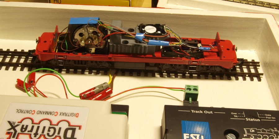 Die Kabel waren schnell wieder an Ort und Stelle. Zugleich habe ich vom Motorschild der Lok noch Kondensator und Drossel entfernt.