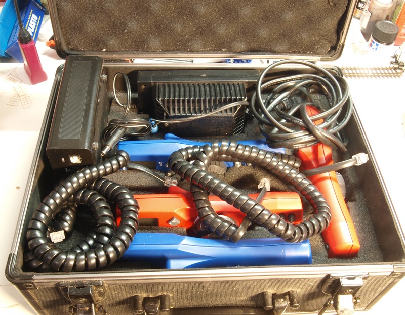 Für unsere Digitalzentrale (Multizentrale Pro von Roco) und meine Mäuse habe ich mir aus einem Fotokoffer ein genau passendes Transportbehältnis gebaut.