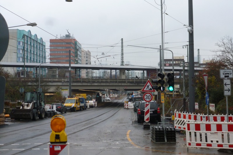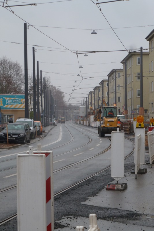 Ein Blick die Stresemannallee hinunter Richtung Süden zeigt, dass die Bauarbeiten noch lange nicht abgeschlossen sind.