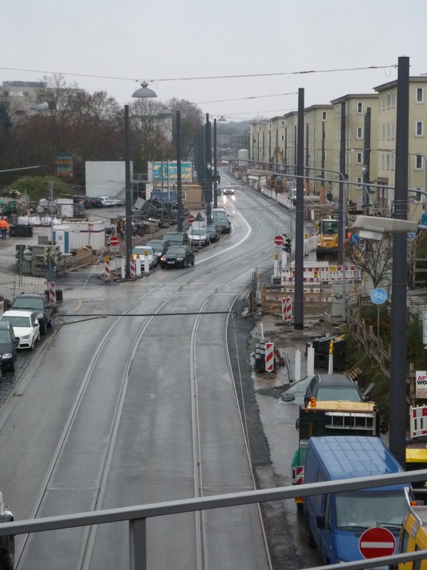 Weiter ging es mit der Straßenbahn Linie 12 zur Haltestelle Stresemannallee/Gartenstraße. Die folgenden Fotos zeigen die Haltestelle und den Abzweig zur Neubaustrecke.