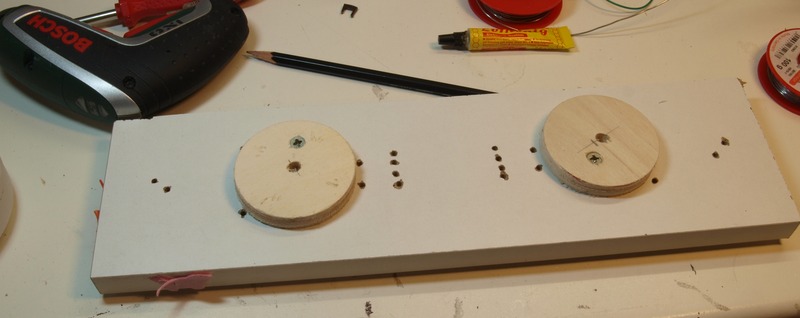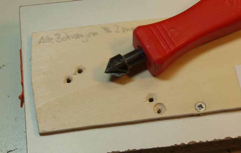 Nach Auflegen der DKW habe ich die Stellen markiert, an denen Bohrungen für Kabel und die Stelldrähte einzubringen waren.