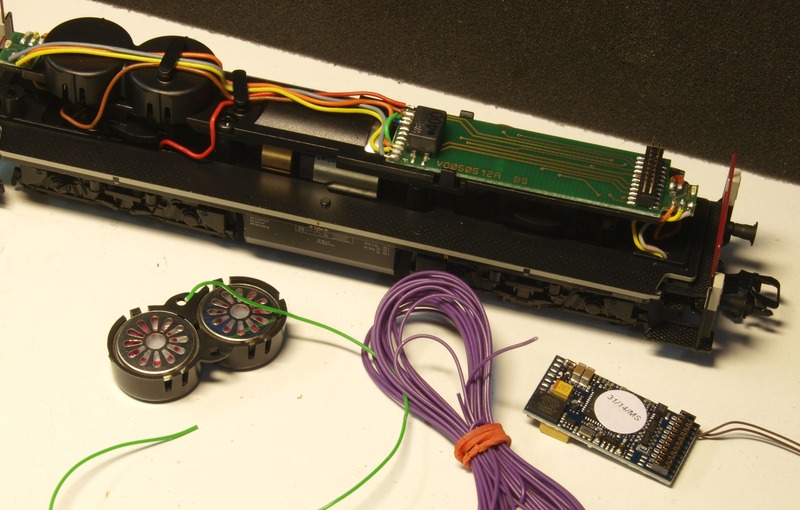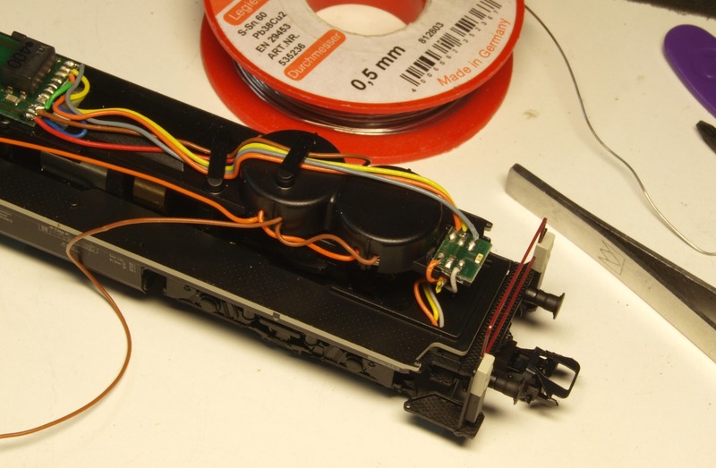 Nach der Demontage der Lok habe ich die Lautsprecher entsprechend der Anleitung von ESU verdrahtet und in den Schallkapseln in der Lok montiert.