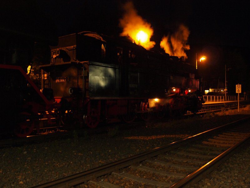Als ich abends zurück gefahren bin, standen im Bahnhof von Suhl eine 44.0 und eine 95 unter Dampf. Das Licht war etwas ungünstig. Ein halbwegs präsentables Foto ist mir dann doch gelungen: