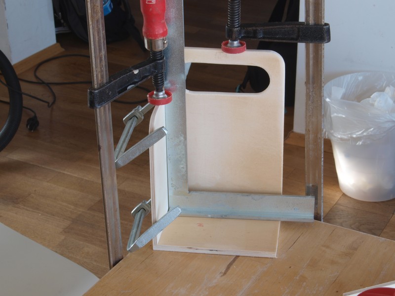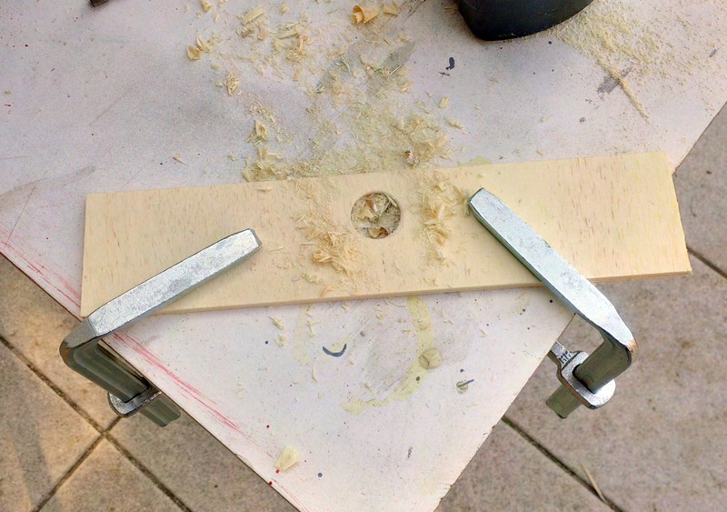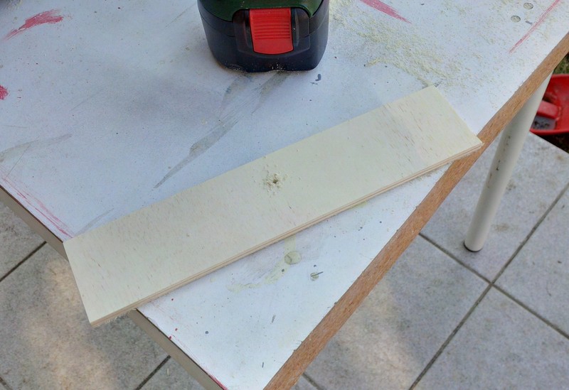 Der Tragegriff ist ein Buchenrundholz mit 20mm Durchmesser. Ich habe ein besonders helles Rundholz ausgesucht, damit die Farbe nicht allzu sehr von der des Pappelsperrholzes abweicht.