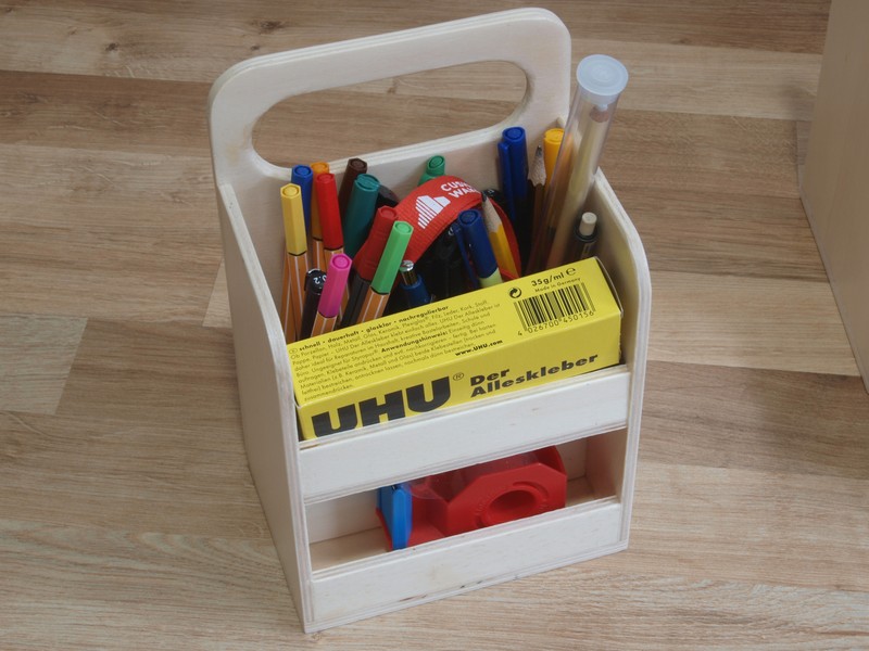 Begonnen habe ich mit einem kleinen Werkzeugeinsatz für Stifte und anderes Schreibmaterial. Als Konstruktionsprogramm kam wieder Sketchup zum Einsatz.