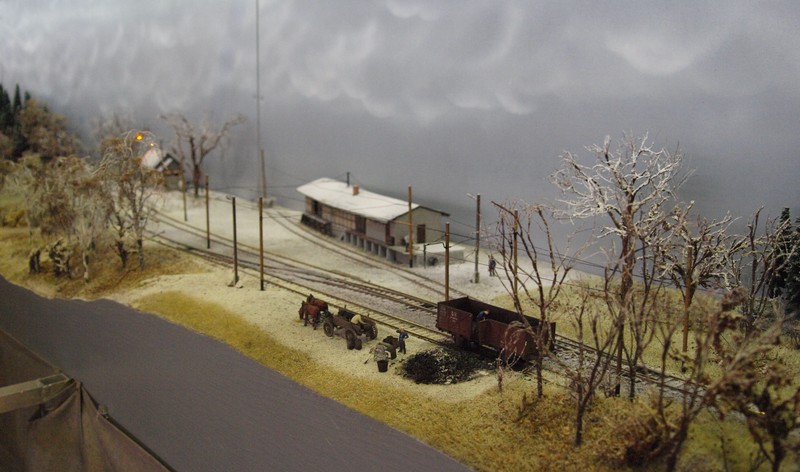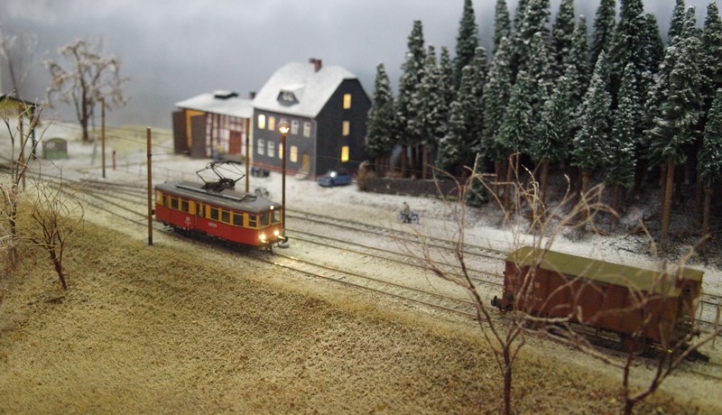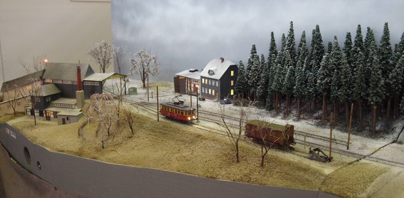 Die Anlage des Rudolstädter Modellbahnclubs, die die Oberweißbacher Bergbahn zum Vorbild hat. Grandios war neben der herbstlich/winterlichen Gestaltung auch die Beleuchtung, die das kalte Winterlicht perfekt wiedergibt.