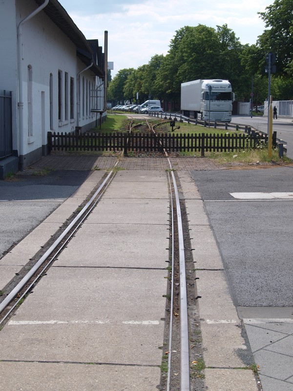 Die Gleislänge entspricht dem Vorbild. Ich habe mich schon vor Jahren gefragt, warum ein Teil des Gleises im Straßenplanum verlegt ist. Ich hatte angenommen, dass es dort eine Culemeyer-Verladung gegeben hat.
