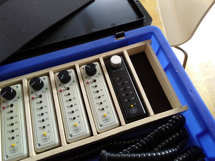 Letzte Woche habe ich mir nach Jahren endlich eine ordentliche Aufbewahrungsmöglichkeit für meine Fremo-Handregler (Fred(i)) ausgedacht und gebaut.