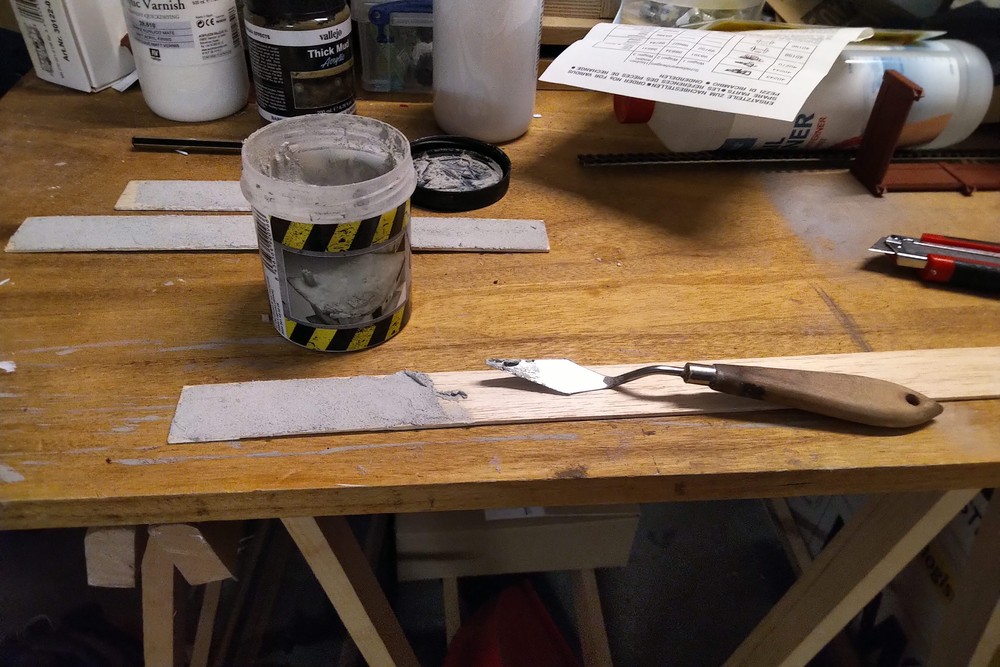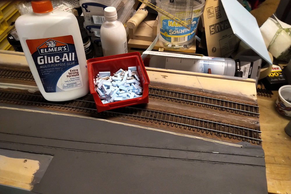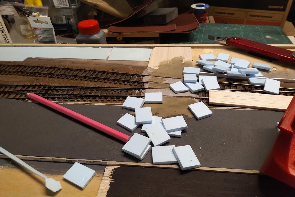 Die Betonplatten für die Ladestraße habe ich aus 4mm starkem Hartschaum geschnitten. Als Kleber habe ich Elmers Allglue verwendet.