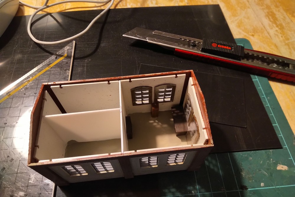 Das Pförtnerhaus entstand aus einem Auhagen-Bausatz, den ich farblich ein wenig verändert und gealtert habe.