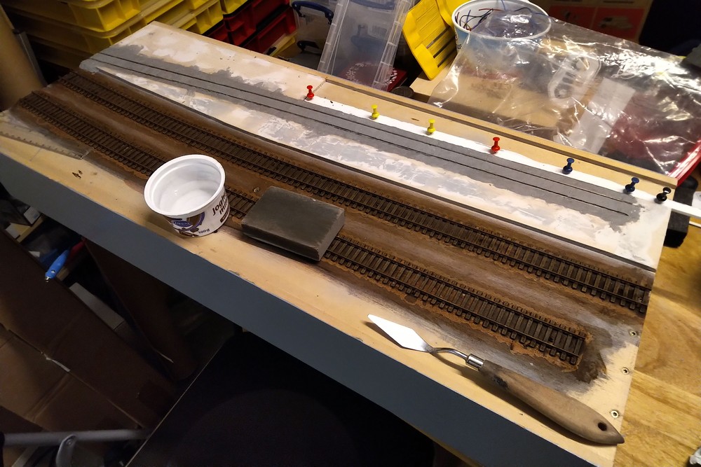 Das Gleis im Straßenplanum habe ich mit Modelliermasse und einer Rolle hergestellt.