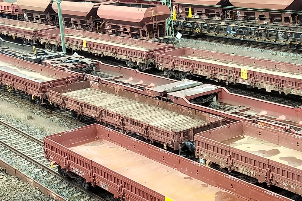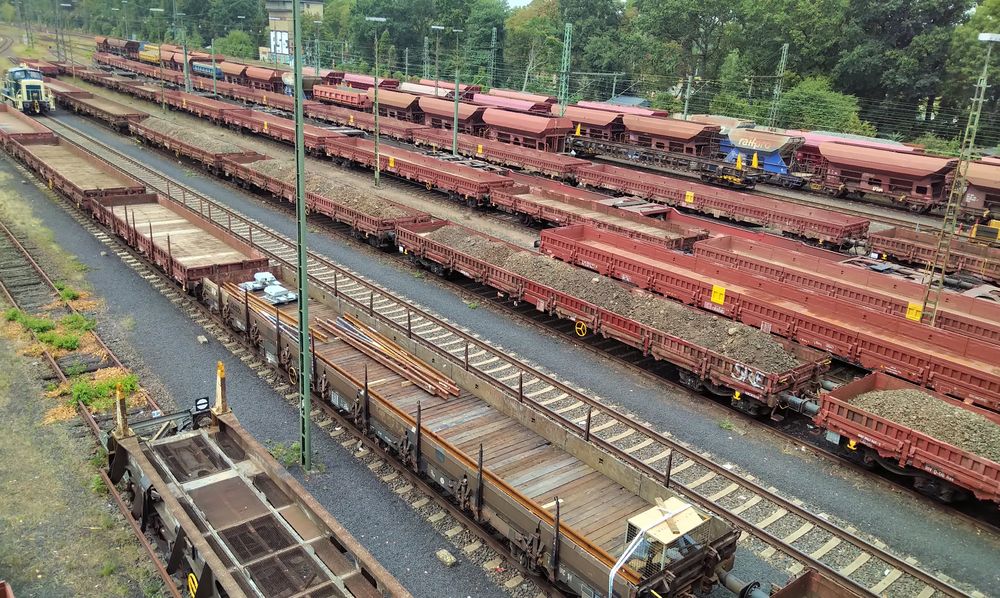 Dort standen einige Güterwagen der Gattung Res, teils leer, teils mit Bettungsrückständen beladen.