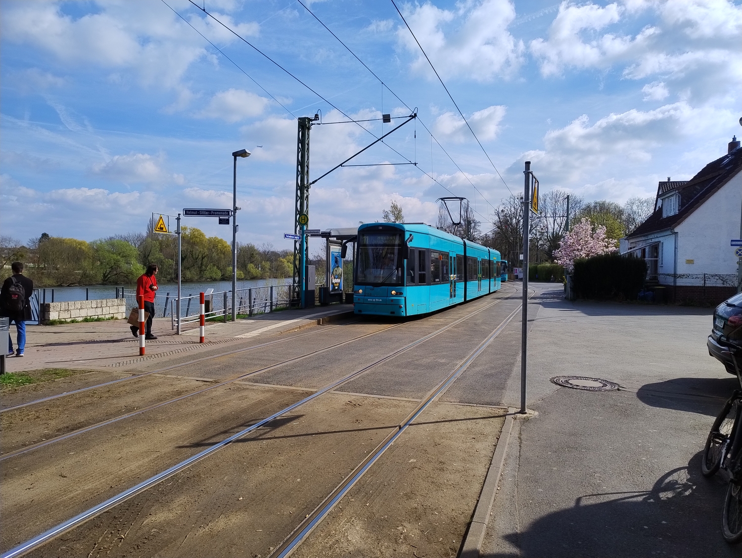 Über die Endhaltestelle der Straßenbahnlinie 11 in Fechenheim und das Streckenstück entlang am Main habe ich in diesem Blog schon mehrfach geschrieben (1, 2 und 3).
