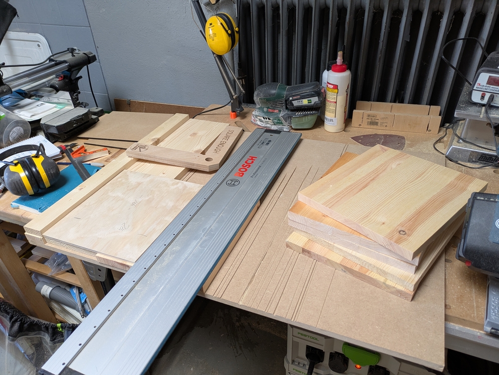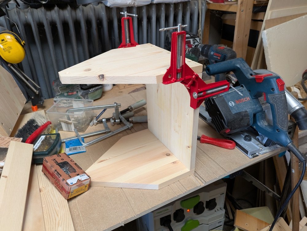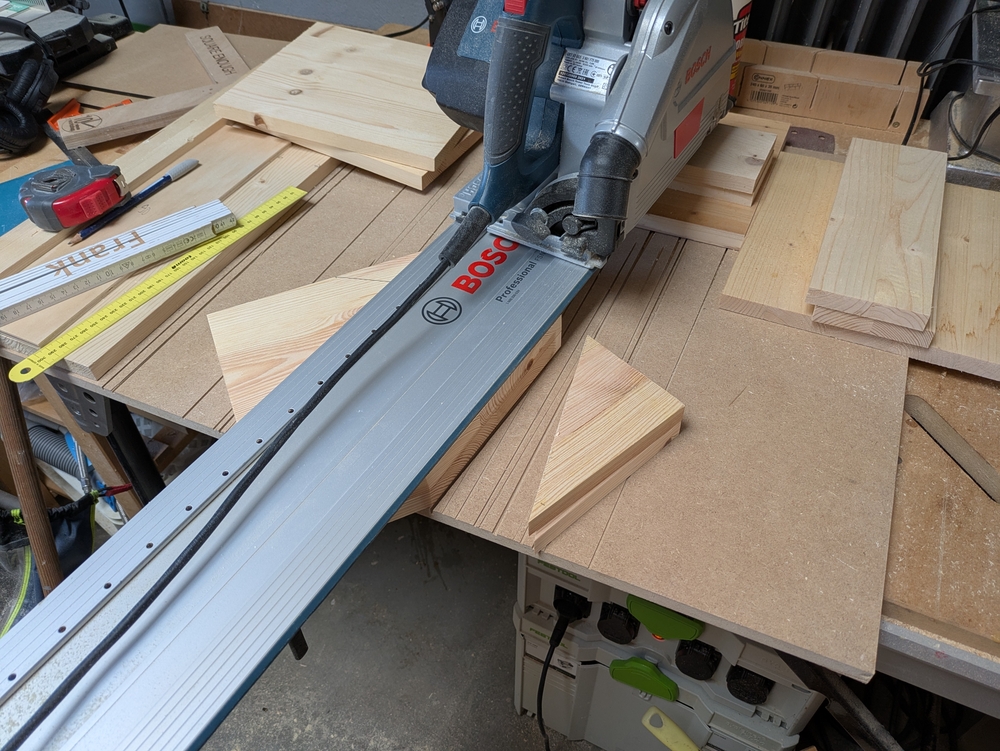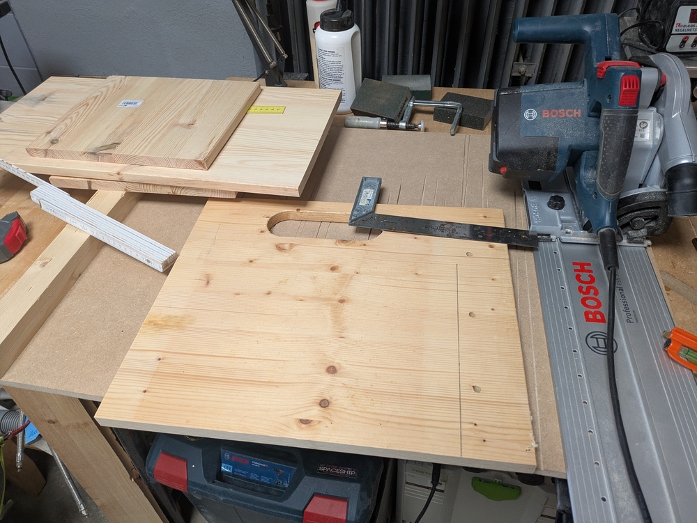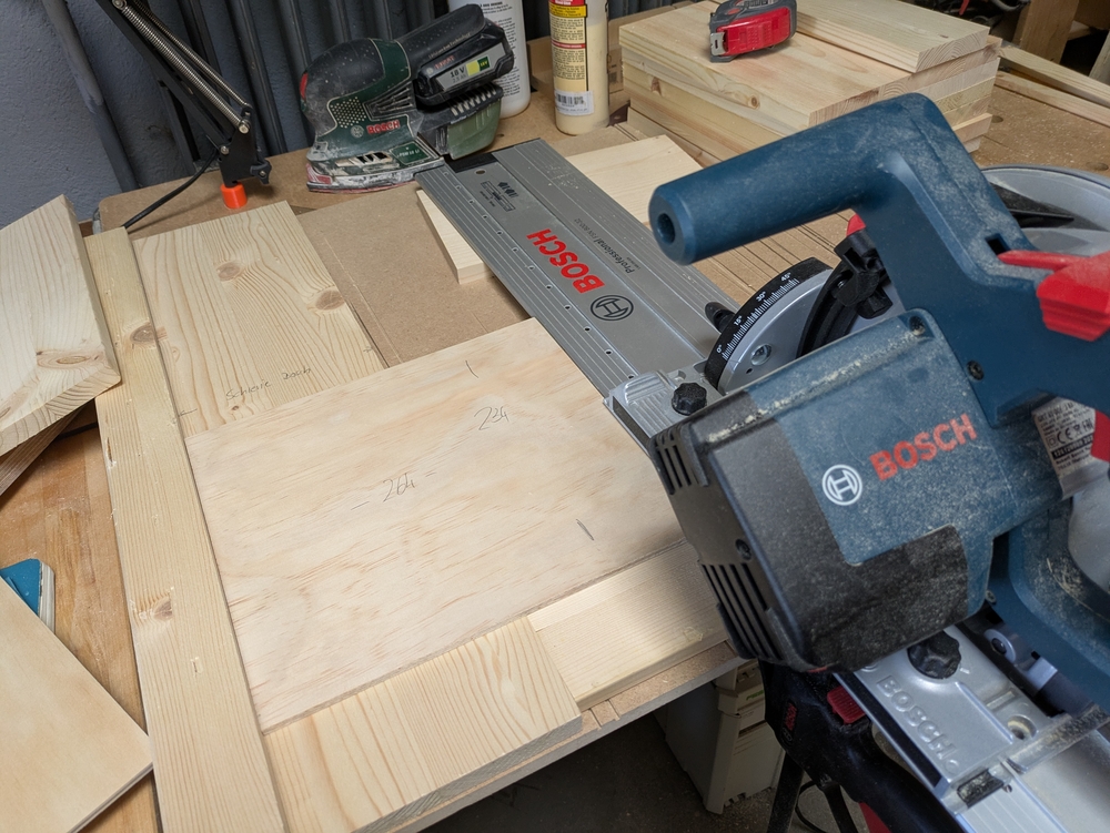 Auf den folgenden Bildern ist zu sehen, wie ich die Kästen zusammengebaut habe. Den Zuschnitt habe ich mit der Tauchsäge gemacht, die Verbindungen geleimt und geschraubt und die Kästen anschließend geschliffen und mit Holzöl behandelt.