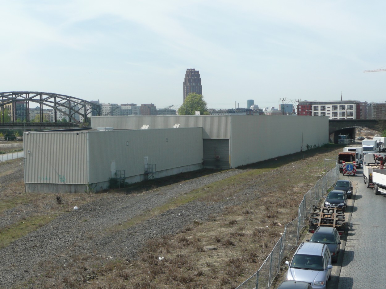 Vor über zehn Jahren habe ich direkt neben der Großmarkthalle, in der jetzt die EZB untergebracht ist, ein Obstlagerhaus fotografiert. Ich war seinerzeit mehr zufällig in den Osthafen gekommen und habe mich gefreut, noch einige Überreste der Gleisanlagen rund um die Großmarkthalle vorzufinden.