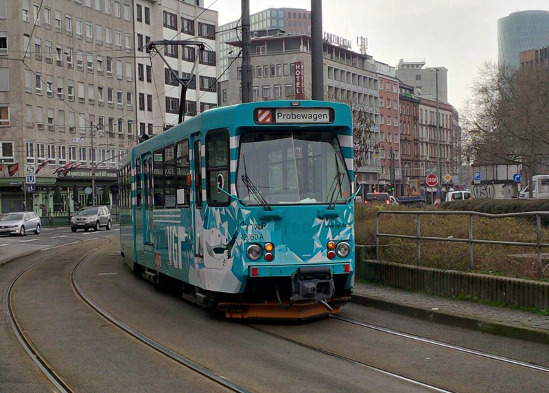 Heute ist mir auf dem Rückweg vom Flughafen am Hauptbahnhof ein Probewagen der VGF vor die (Handy-) Kamera gefahren.