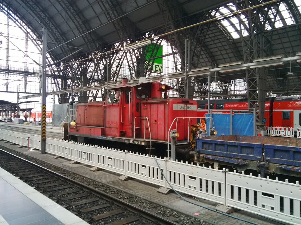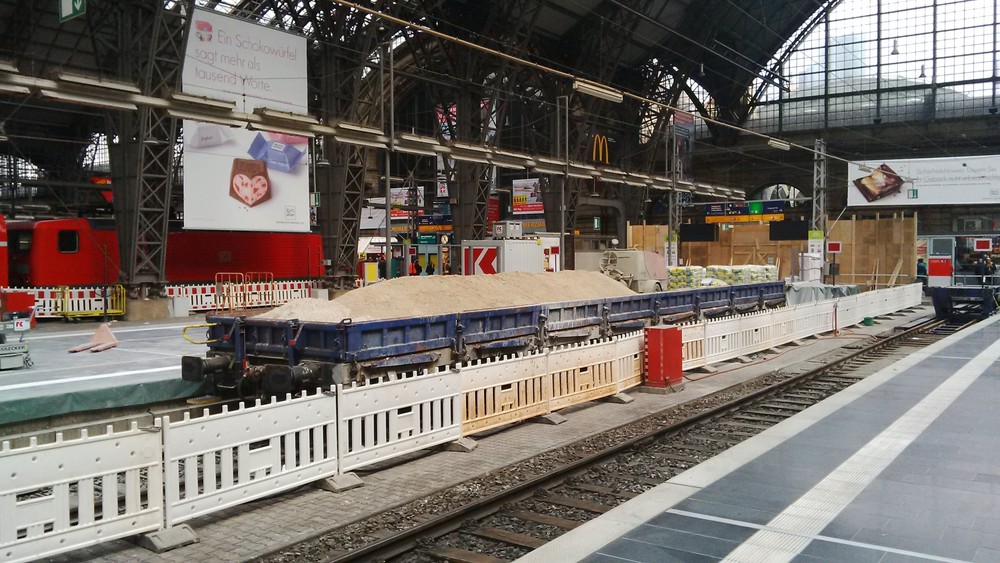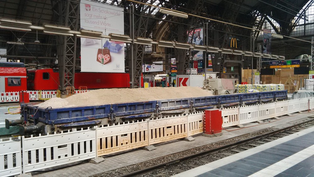 Ein Bauzug im Frankfurter Hauptbahnhof