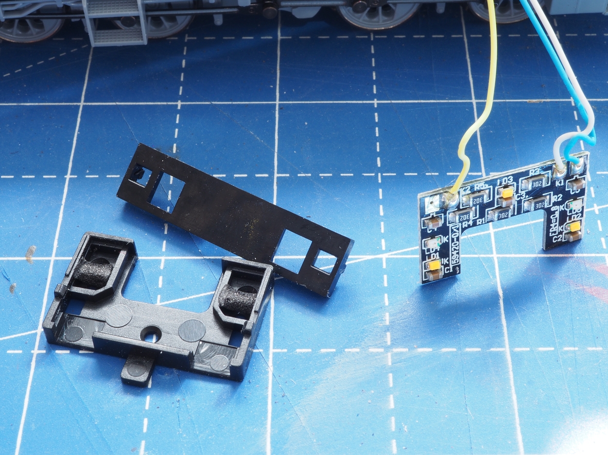 Der Umbau ist schnell gemacht. Die LEDs für die Beleuchtung sind in drei Platinen verbaut. Zwei Platinen auf Vorder- und Rückseite tragen die LEDs für die unteren Spitzenlichter und die LEDs für den Zugschluss. Unter dem Führerhaus ist eine weitere Platine angeordnet, die die LEDs für die oberen Spitzenlichter aufnimmt.